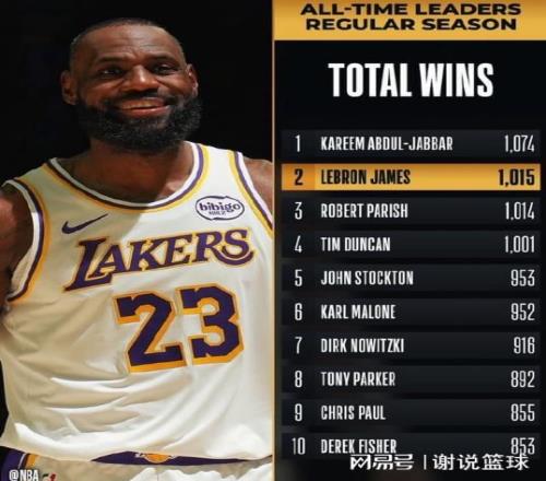 而湖人結(jié)束客場(chǎng)之旅后,可謂是三喜臨門,首先詹姆斯迎來(lái)新里程碑,自從他進(jìn)入NBA聯(lián)盟以后,已經(jīng)取得1015場(chǎng)勝利,這讓詹姆斯超越綠軍名宿帕里什,獨(dú)占?xì)v史第二位置,僅次于同是湖人傳奇的賈巴爾。如果詹姆斯繼續(xù)球員生涯,預(yù)計(jì)在下賽季初期,他很可能超越賈巴爾,在這個(gè)榜單霸占頭名,湖人官方也曬出圖片,向詹姆斯表達(dá)了祝賀。