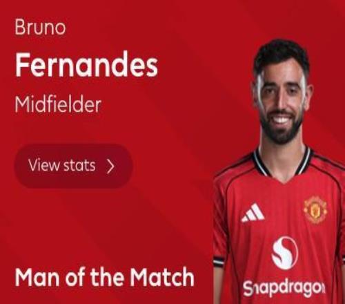 最終經(jīng)過(guò)英超官網(wǎng)球迷投票,布魯諾-費(fèi)爾南德斯當(dāng)選全場(chǎng)最佳球員。