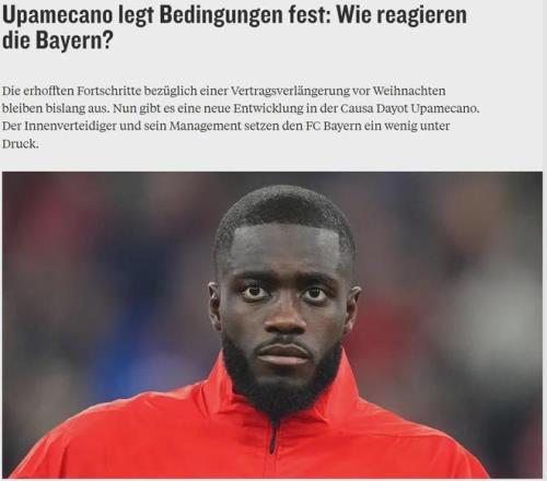 本賽季烏帕梅卡諾在孔帕尼手下發(fā)揮出色,而踢球者和體育圖片報都表示法國人想要1600萬歐元的年薪,并且還要加上違約金條款,不過,據(jù)悉球員方面對拜仁遲遲不愿滿足他們的要求感到越發(fā)失望。
